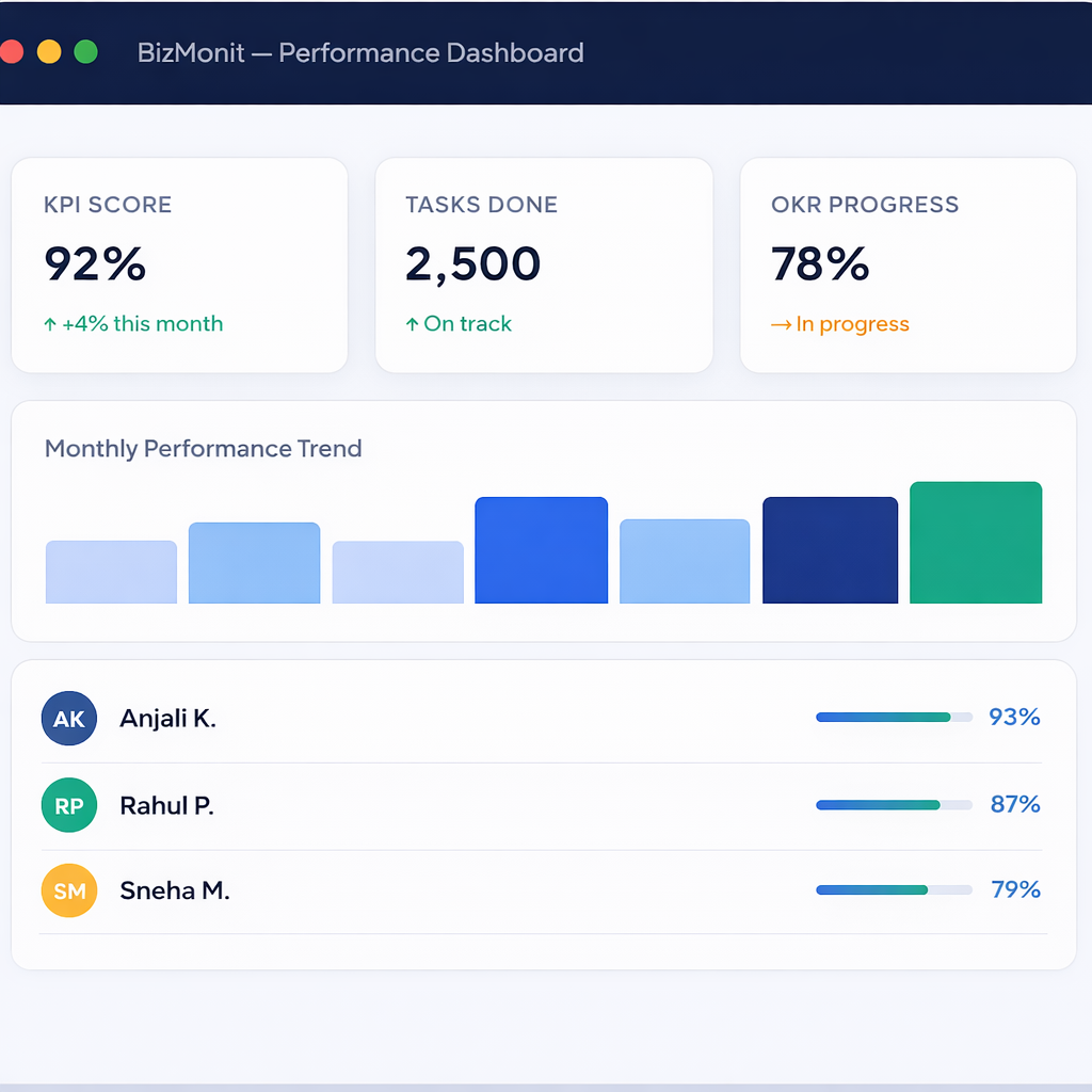 Whether you’re a scrappy startup or a scaling enterprise, BizMonit adapts to how your team works.